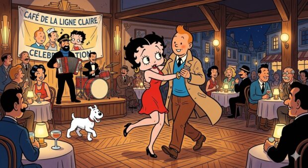 Make an image of Tintin dancing with Betty Boop.