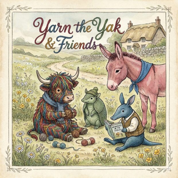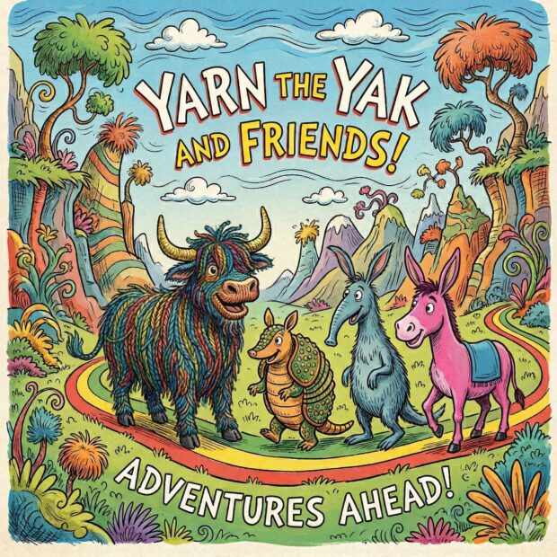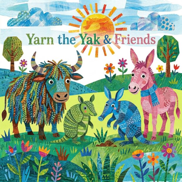First I created images of Yarn the Yak and their friends the armadillo, aardvark, and donkey using different illustrators’ style: