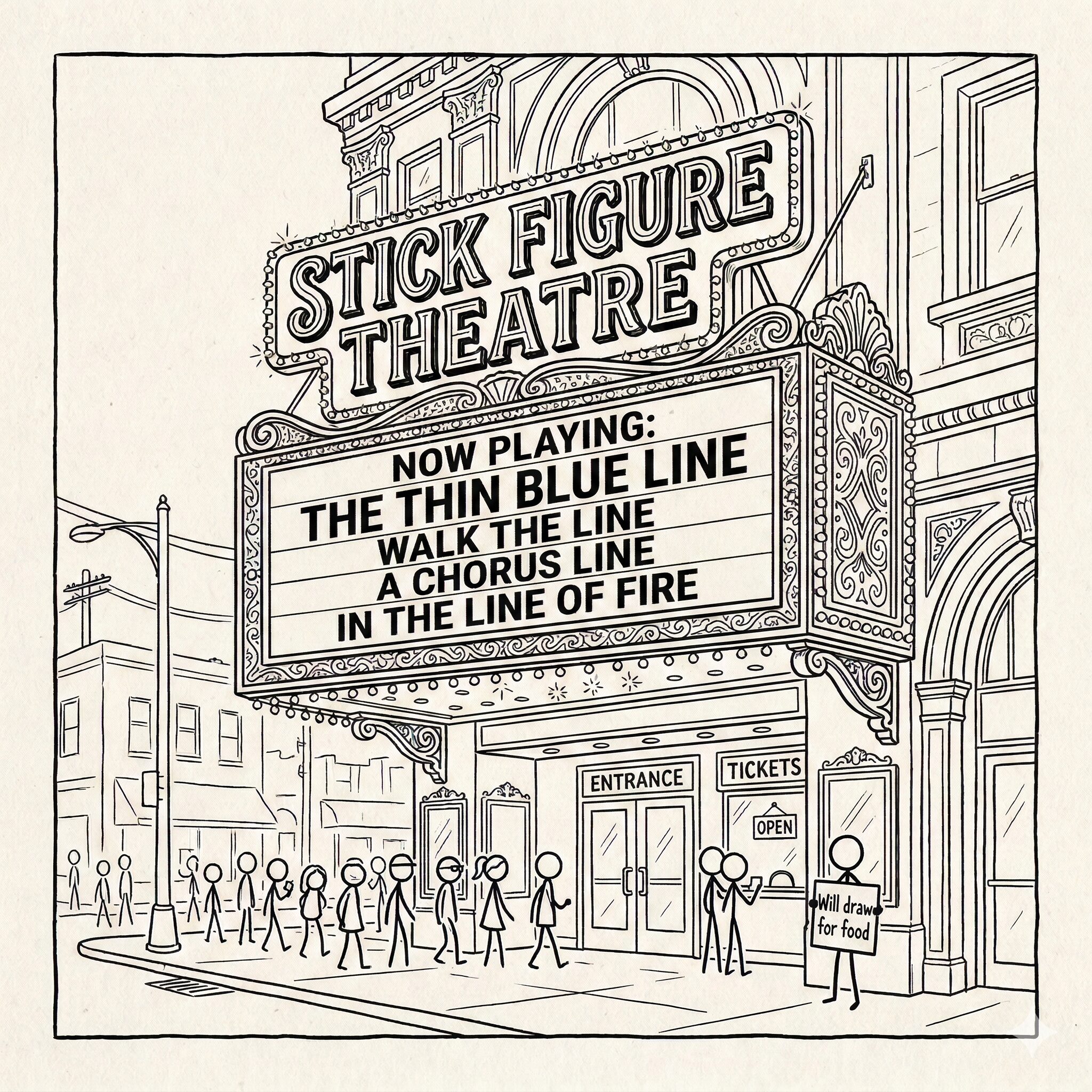 Another little note in an old notebook about recreating scenes from major motion pictures using stick figures.